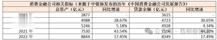 就整个消费金融行业来看,2018-2022年期间,消费金融行业的总资产余额分别为3877亿元、4988亿元、5246亿元、7530亿元和8844亿元,贷款余额分别为3615亿元、4723亿元、4928亿元、7106亿元和8349亿元。